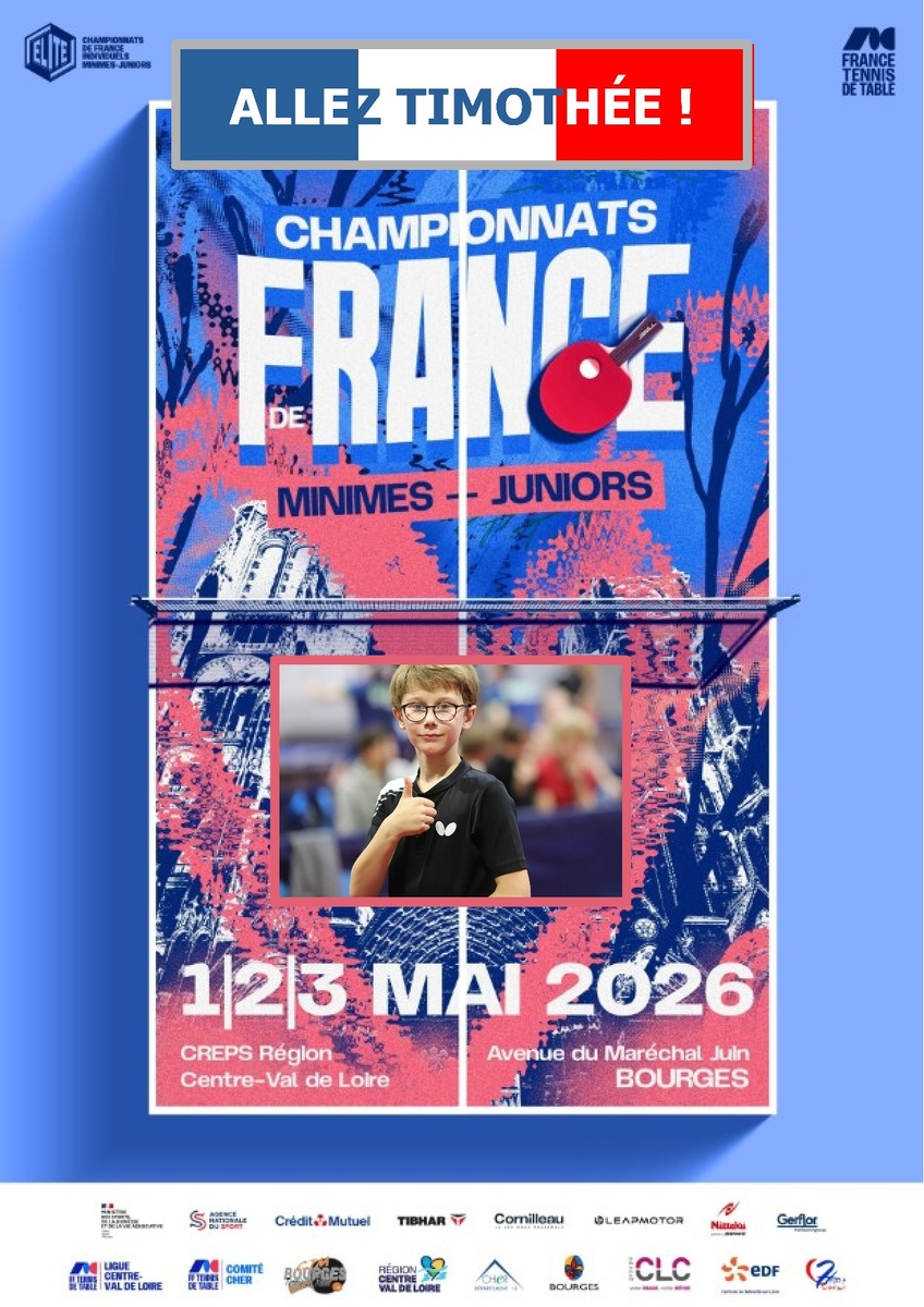 Bravo à Timothée pour sa qualification aux championnats de France Minimes qui auront lieu les 1er, 2 et 3 mai 2026 à Bourges !